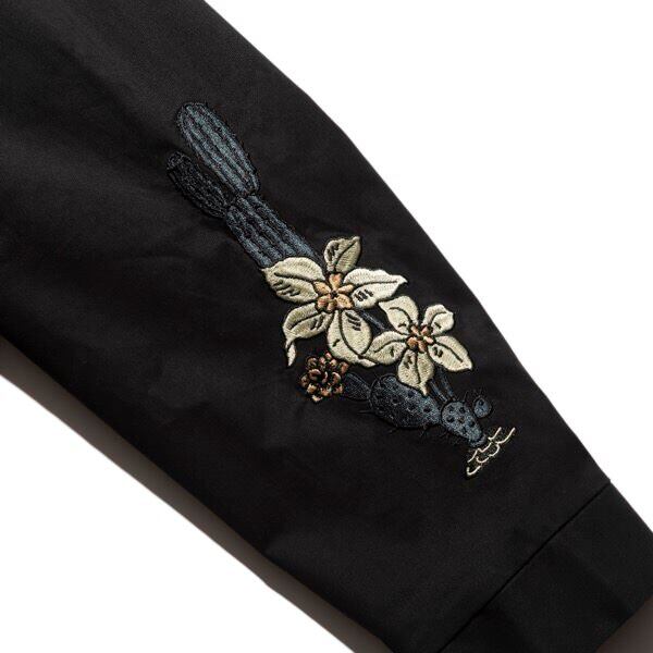一着。インパクトのあるグラフィックを丁寧な刺繍で仕上げたボンバージャケットです。