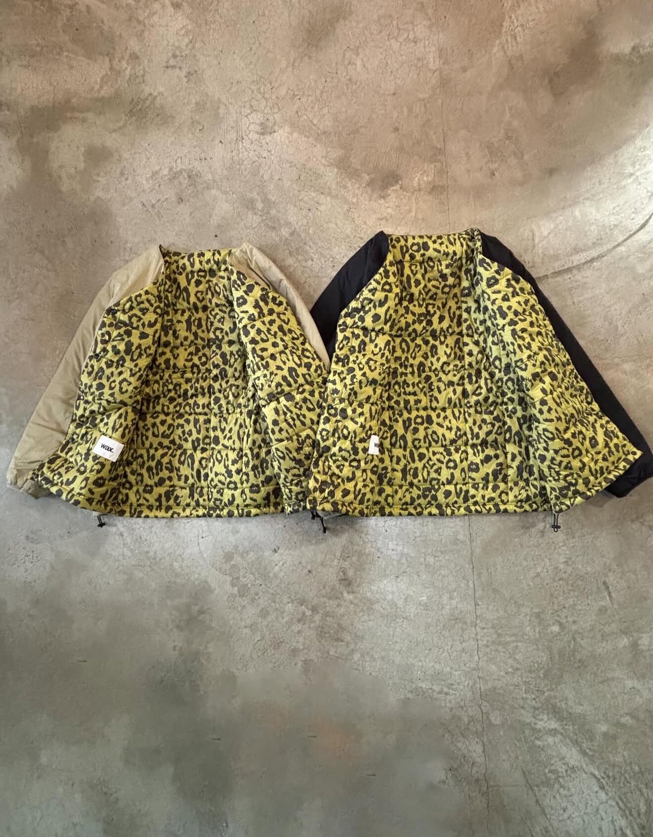 A面はマットな無地、B面はインパクト大のイエローベースのヒョウ柄。