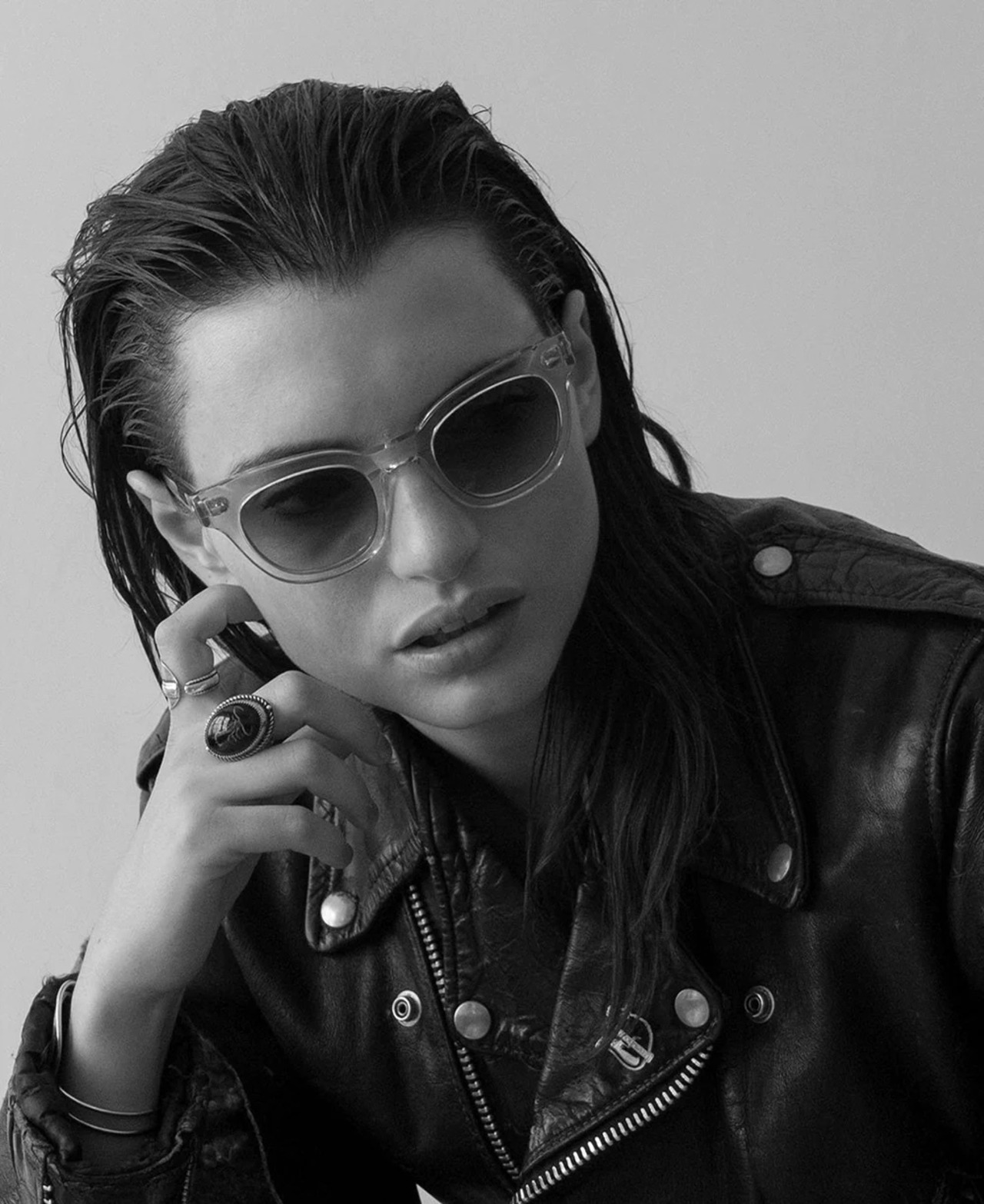 ややキャットアイ気味な造形美が光るフレームには、ディランらしい色気と挑発的な不良性が備わっています。