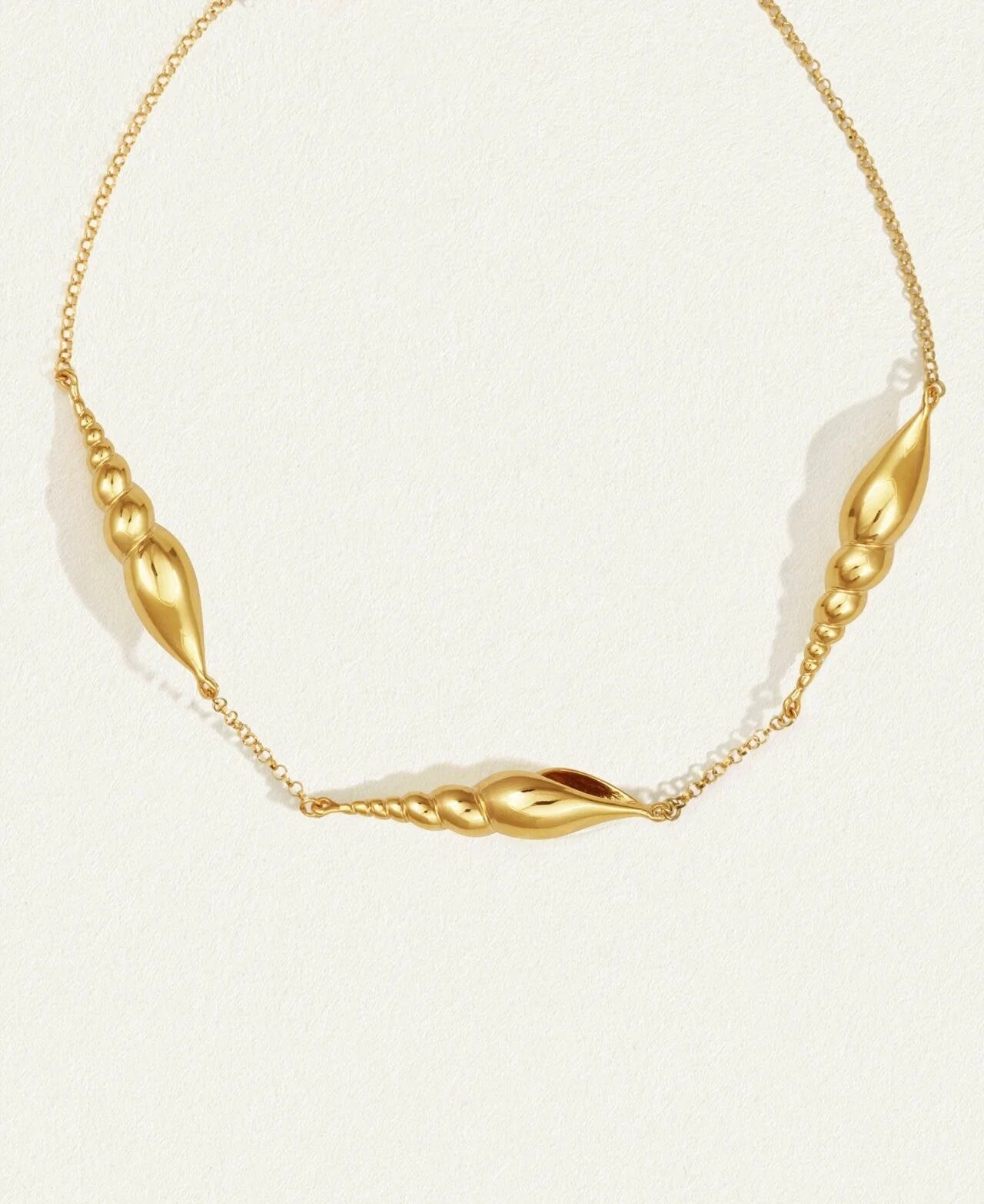 古代の秘密の器であるスパイアネックレスは、高度に磨かれた18Kゴールドヴェルメイユで作られた大胆なステーションネックレスです。